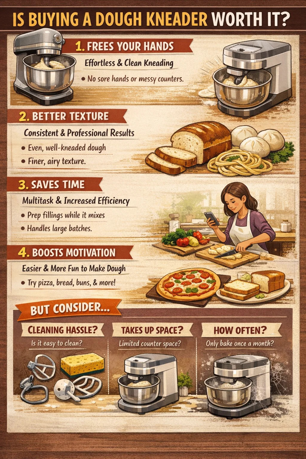 Cumpărați un aluat framantator chiar merita? Depinde în principal de cât de mult îți place să faci paste și cât de mult prețuiești timpul tău. Este ca o mașină de spălat vase sau un aspirator robot – unii oameni cred că este un salvator, în timp ce alții cred că doar ocupă spațiu.