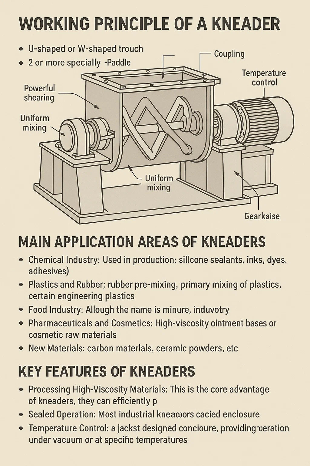▸ Industria alimentară: Deși denumirea este similară, frământările industriale și „mixtoarele de aluat” de bucătărie au principii similare, utilizate pentru producția pe scară largă de aluat, bază de gumă de mestecat etc.